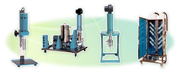 試験機から生産機まで弊社では一貫して製作を行っております。そのため、実際に使う機械と試験機とのずれが少なく、お客様の生産性もアップします。強力超音波エネルギーを利用して各種部品、器具類の洗浄及び粉体粒子を超音波振動にて液中にて粉砕微細化する分散機を設計・製作しています。
